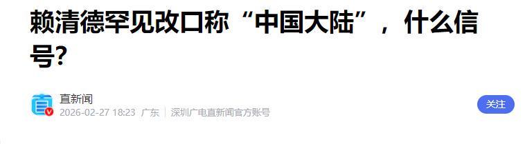 直新闻:赖清德罕见改口称“中国大陆”,什么信号?