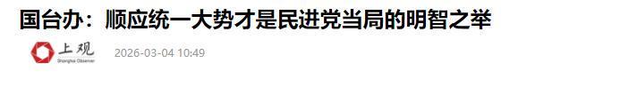上观新闻:国台办:顺应统一大势才是民进党当局的明智之举